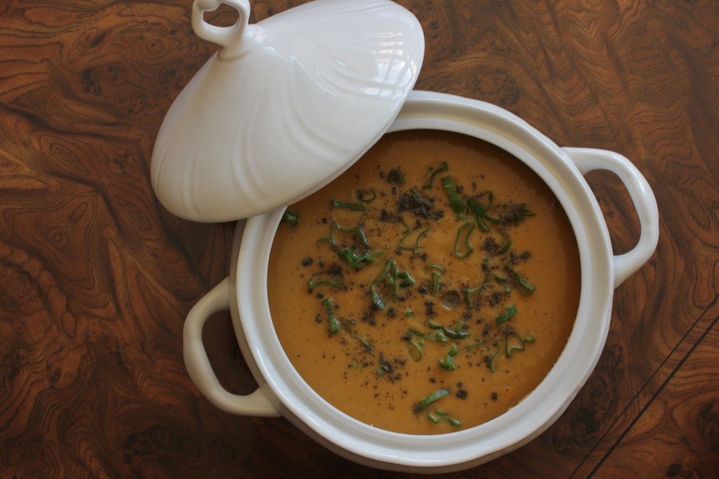 Una crema de «sobras» o «restos» buenísimaLa he adornado con cebolleta y semillas de cáñamo en polvo